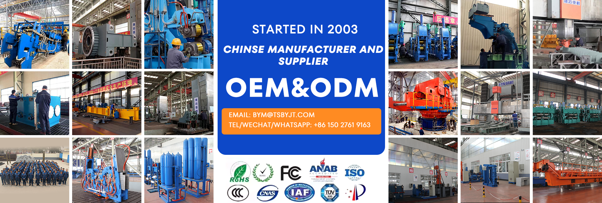 Productos principales:Maquinaria metalúrgica y metalúrgica, máquina de fundición continua de acero, EPC de fabricación de acero, piezas de repuesto de rueda continua, laminador